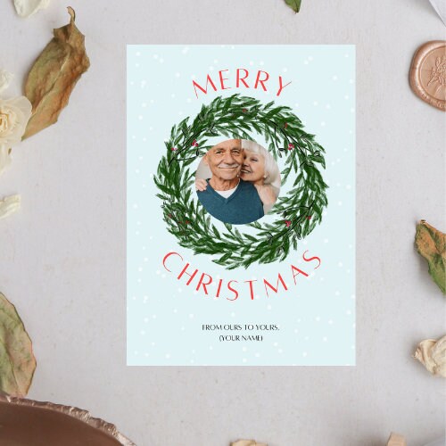 Christmas card with wreath photo, Christmas card download , Christmas download, Retro cards , vintage retro Christmas , Photo Christmas Card