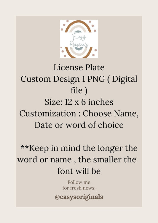 Custom License Plate Personalized Plate - 6x12 Inch Vanity Tag, Customizable Design for Unique Vehicle Identity PNG Instant DIGITAL ONLY