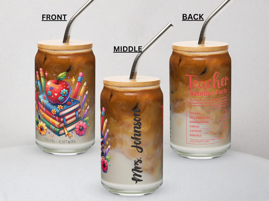 Custom teaching is Heartwork 16 oz Tall Glass, Personalized teaching is heart work glass cup, Cute teacher back to school Appreciation Gift