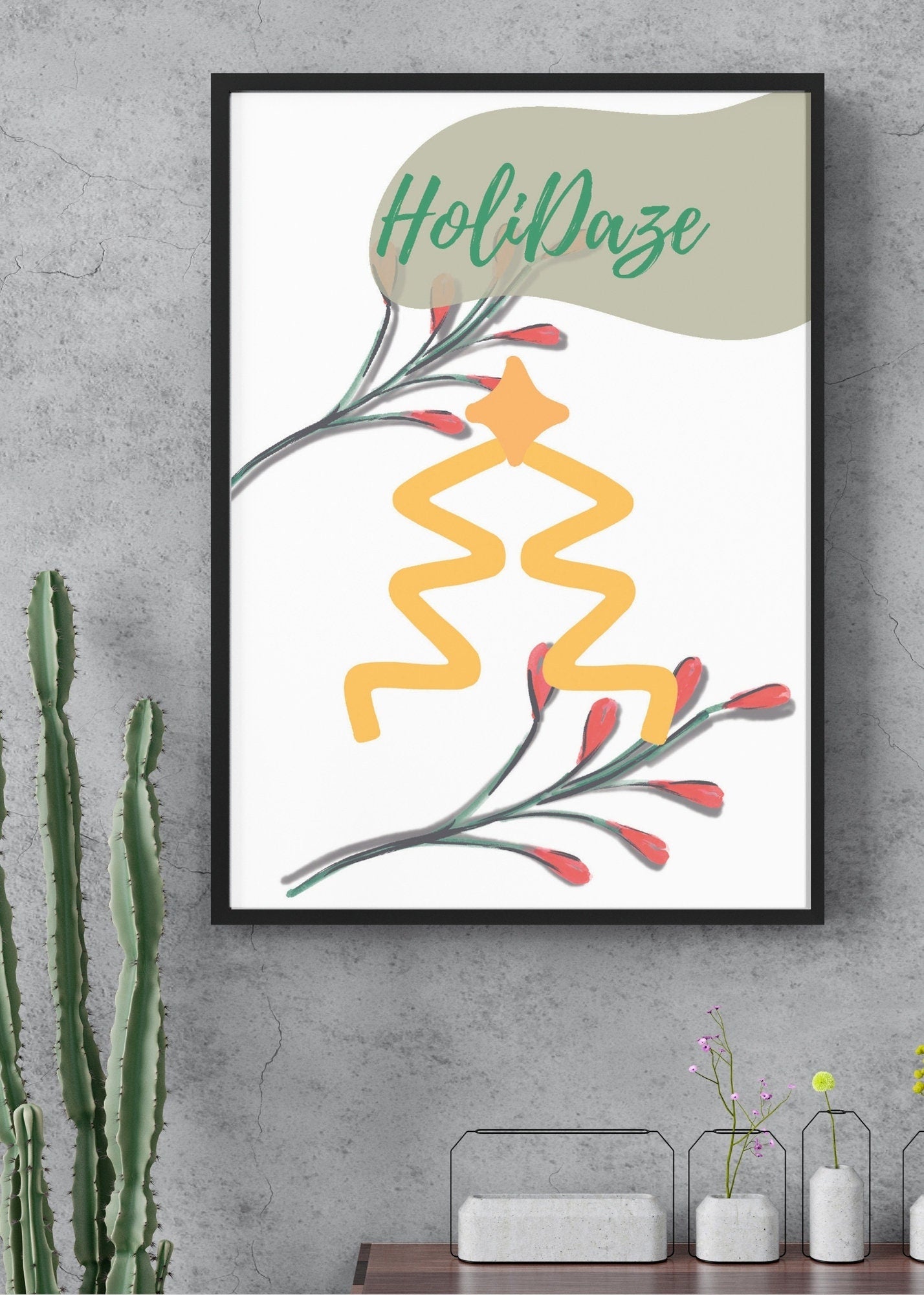 Retro Christmas tree holiday poster, printable art, retro holiday, Holiday Poster for the home , housewarming gifts, Digital