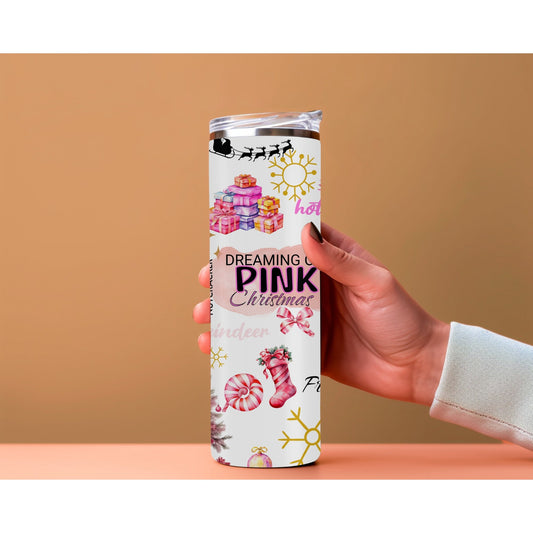 Pink christmas Tumbler Wrap 20 oz skinny tumbler Sublimation Digital download png, retro Christmas tumbler